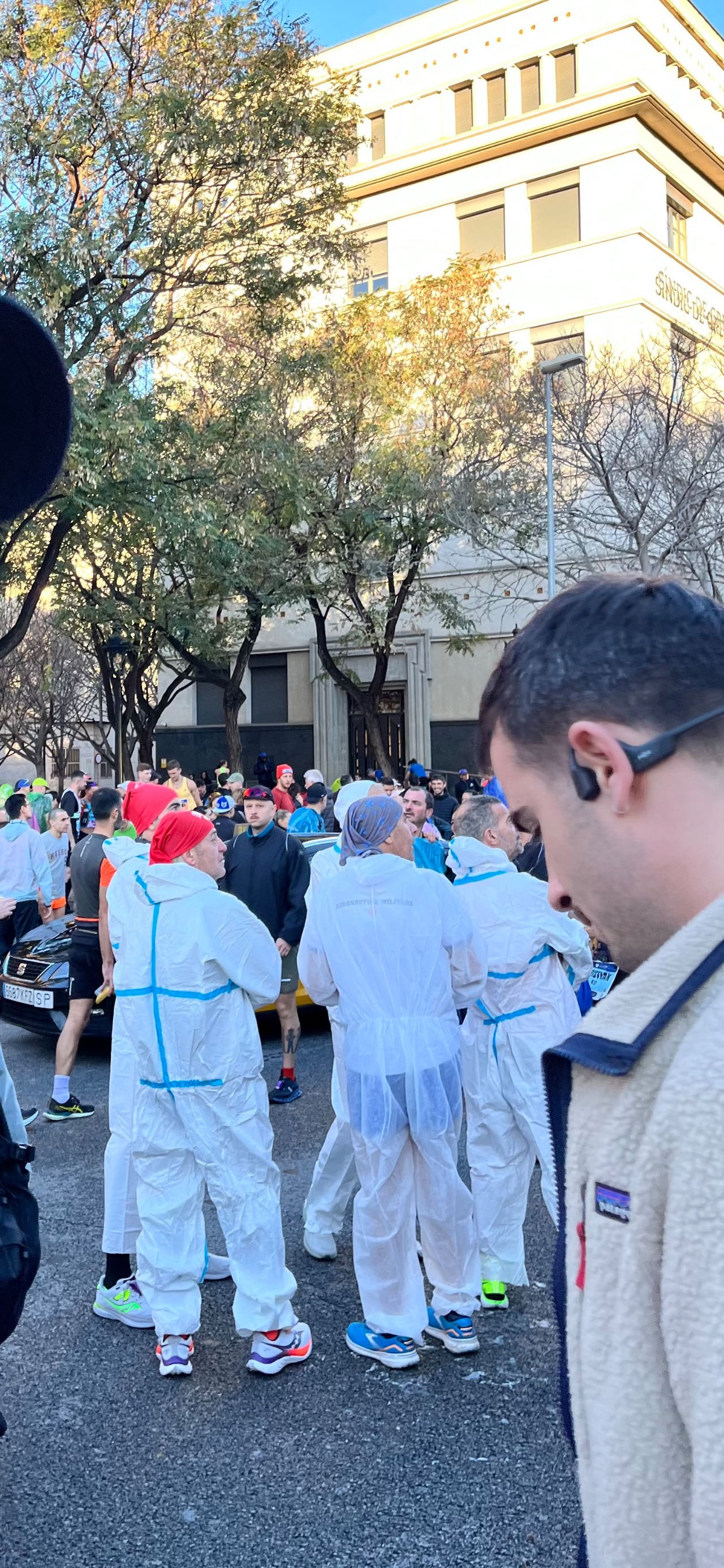 从存衣处去往出发点的路上,看到几个人穿着久违了的新冠时期的白色防护服,第一个念头,这些人在cosplay,意图抹黑我的祖国。从旁偷偷观察,他们的神情动作又不露端倪。后来又看到一位女士,也穿着差不多的衣服。冷静下来,想着要么这里的雨衣有这款式,要么他们是医护人员,拿了压箱底的防护服当保暖服。